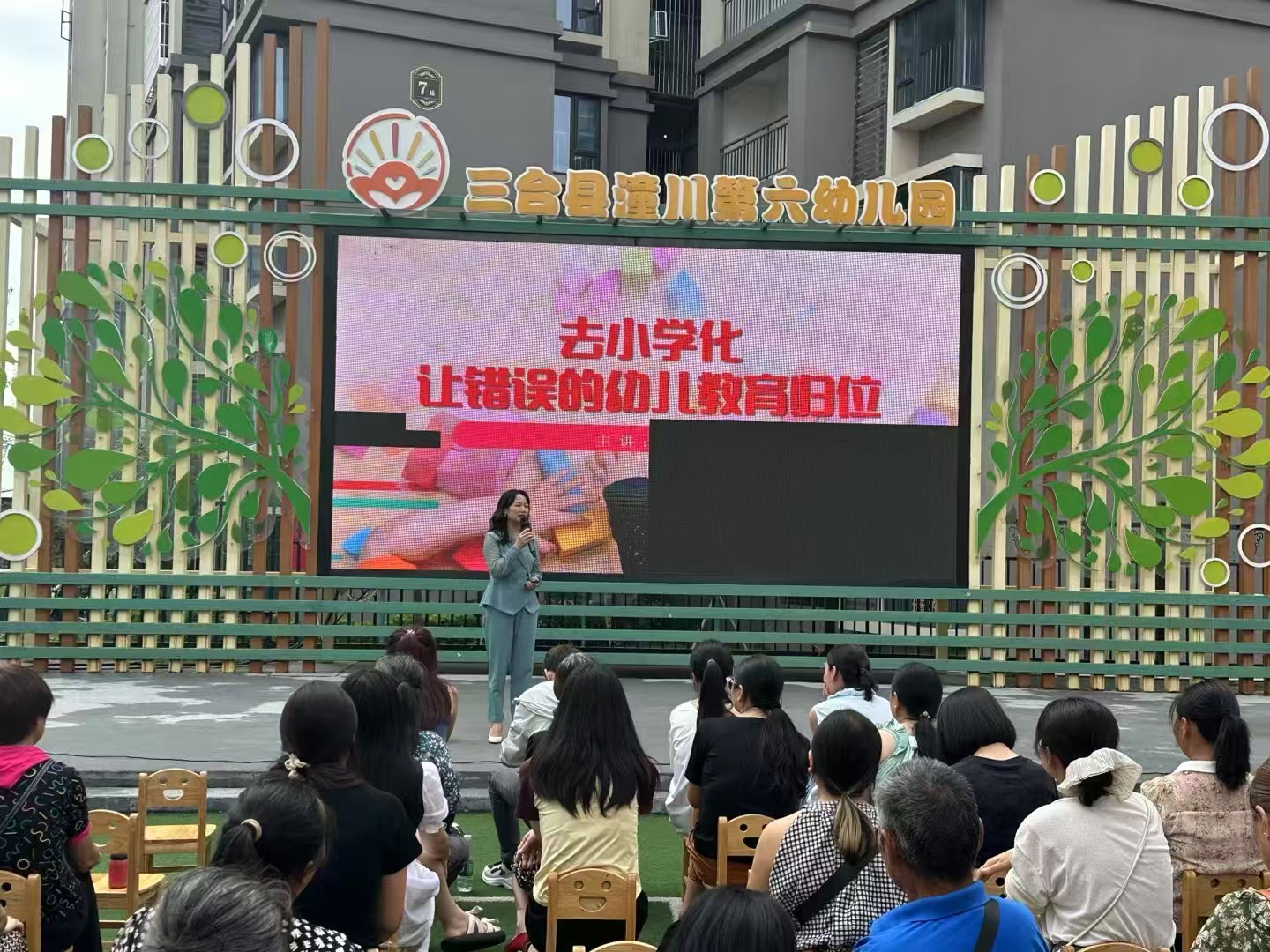 为进一步加强家长对学前教育规范办学的意识,提升家长科学家教水平,促进家园共育工作开展,今日我会副秘书长郭萍、高级讲师石敏、办公室张菊赴三台县潼川六幼开展《去小学化 让错误的幼儿教育归位》讲座活动。石老师从《学前教育法》解读入手,为家长们进行了精彩的分享。期间,家长们认真聆听、积极互动、收获满满。讲座也得到了园方的高度评价,这既是对我会专业工作的褒奖,更是工作前进的方向与动力。