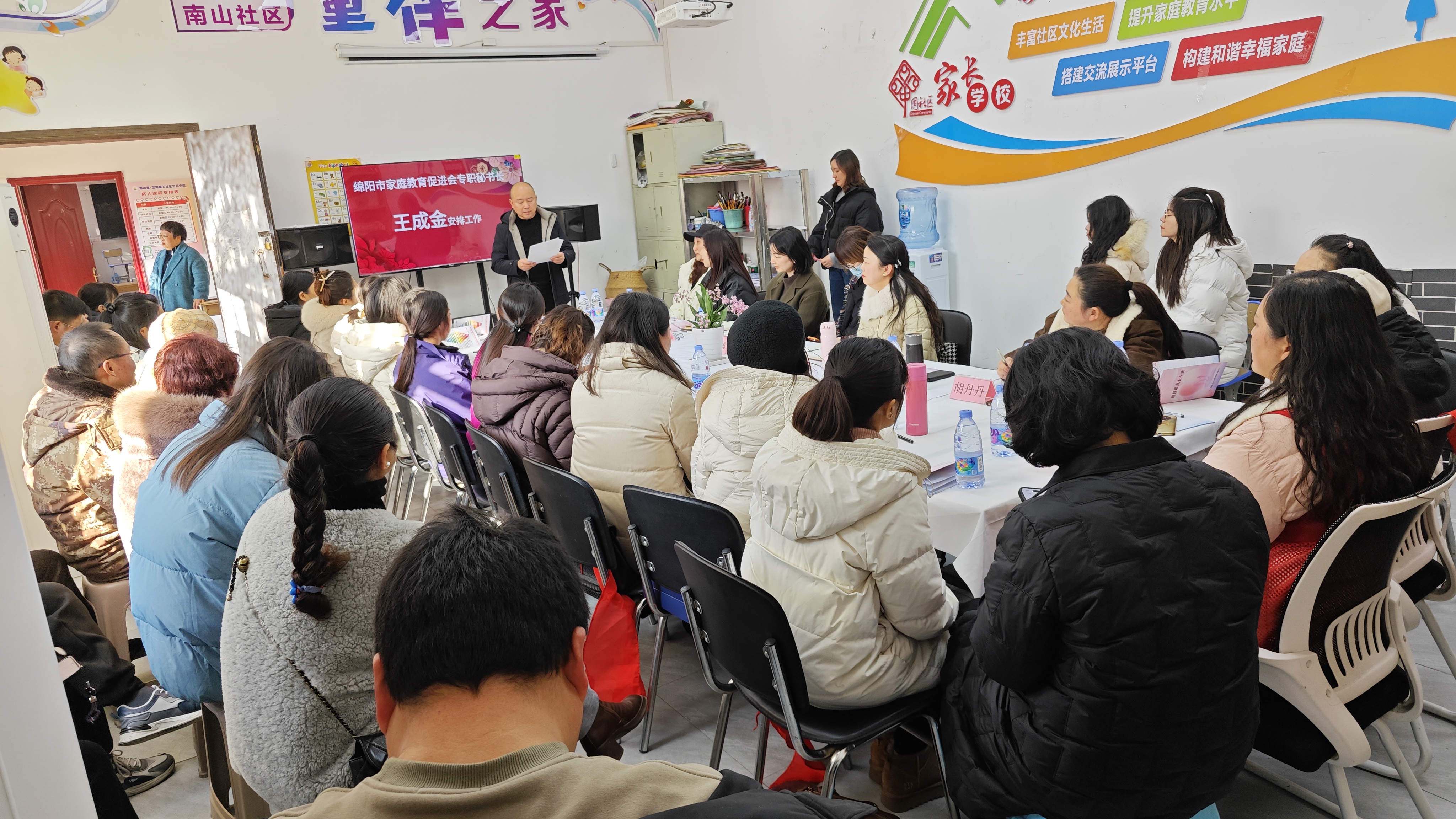 2026年1月7日,在绵阳市妇女联合会、绵阳市关心下一代工作委员会的指导下,绵阳市家庭教育促进会、绵阳市家庭教育学校总校携手南山社区精心策划的“智慧父母研修班”正式开班。涪城区妇联主席唐娟,绵阳市家庭教育促进会专职秘书长王成金,涪城区石塘街道便民中心主任梁耘博,石塘街道、南山社区妇联相关同志及辖区50余名家长代表参加活动。