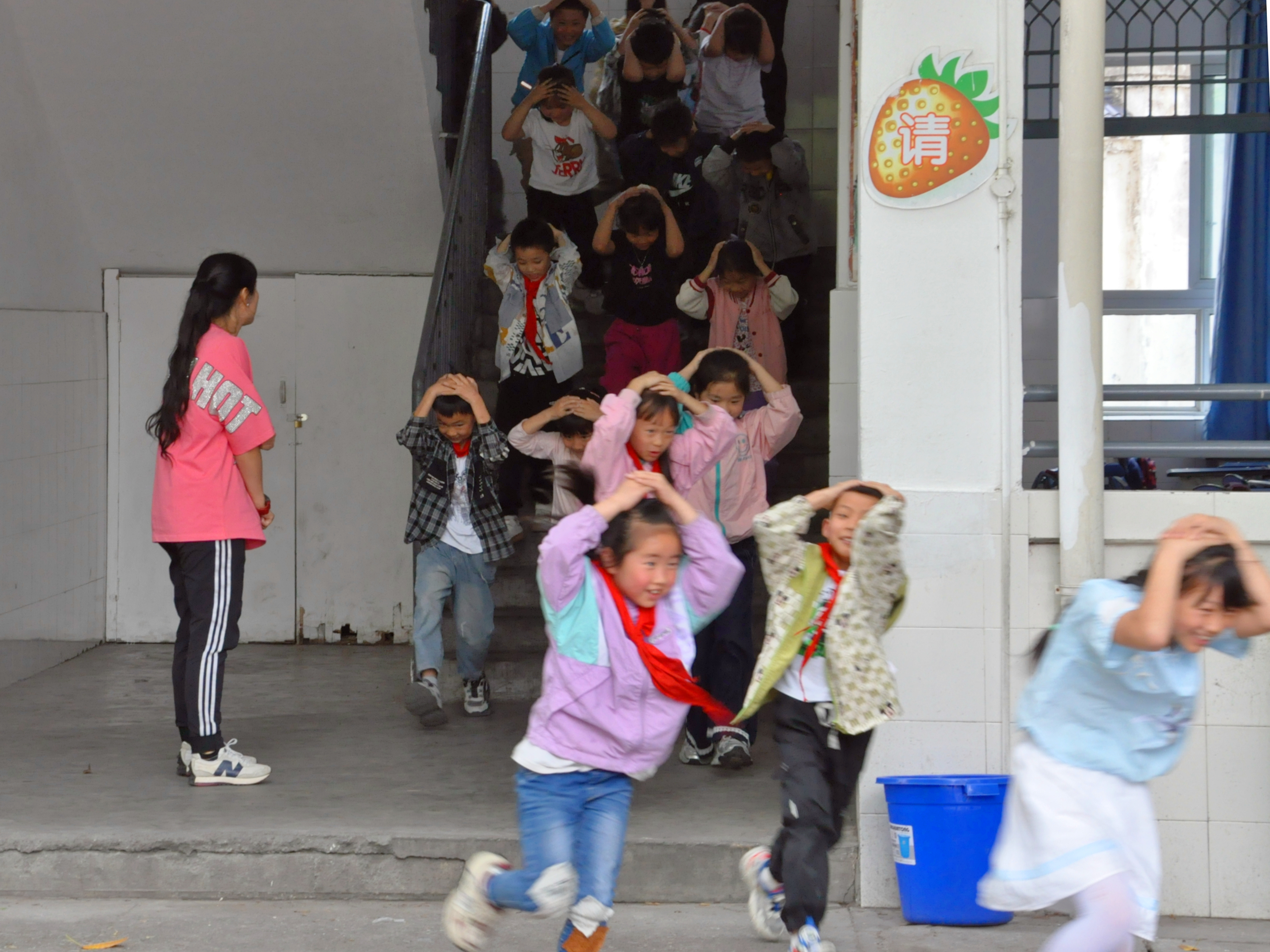 上午十点,疏散警报拉响,疏散行动正式开始。师生们沿着预先规划好的疏散路线,分楼层、分班级有序撤离。在撤离过程中,同学们保持弯腰前行,用手或物品护住头部,按照老师的指挥稳步前进。各楼层负责疏散的老师在指定岗位,密切关注学生的疏散情况,确保每一位学生的安全。整个疏散过程紧张有序,仅用时2分钟,全校师生便全部安全集结至操场指定区域。各班班主任迅速清点人数,并逐级上报,确保无一学生遗漏。