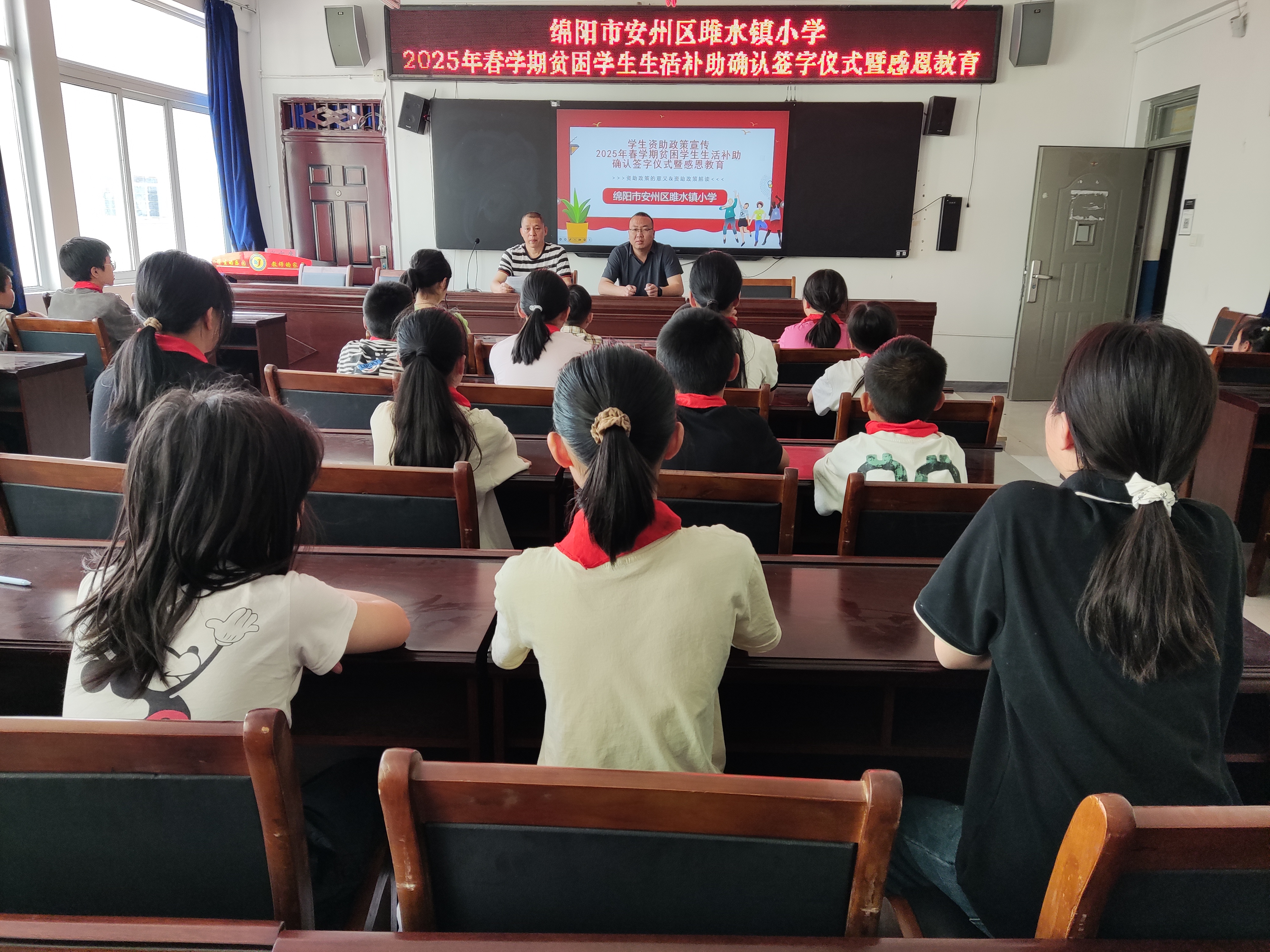 绵阳市安州区雎水镇小学举行2025年春学期贫困学生生活补助确认签字仪式暨感恩教育活动