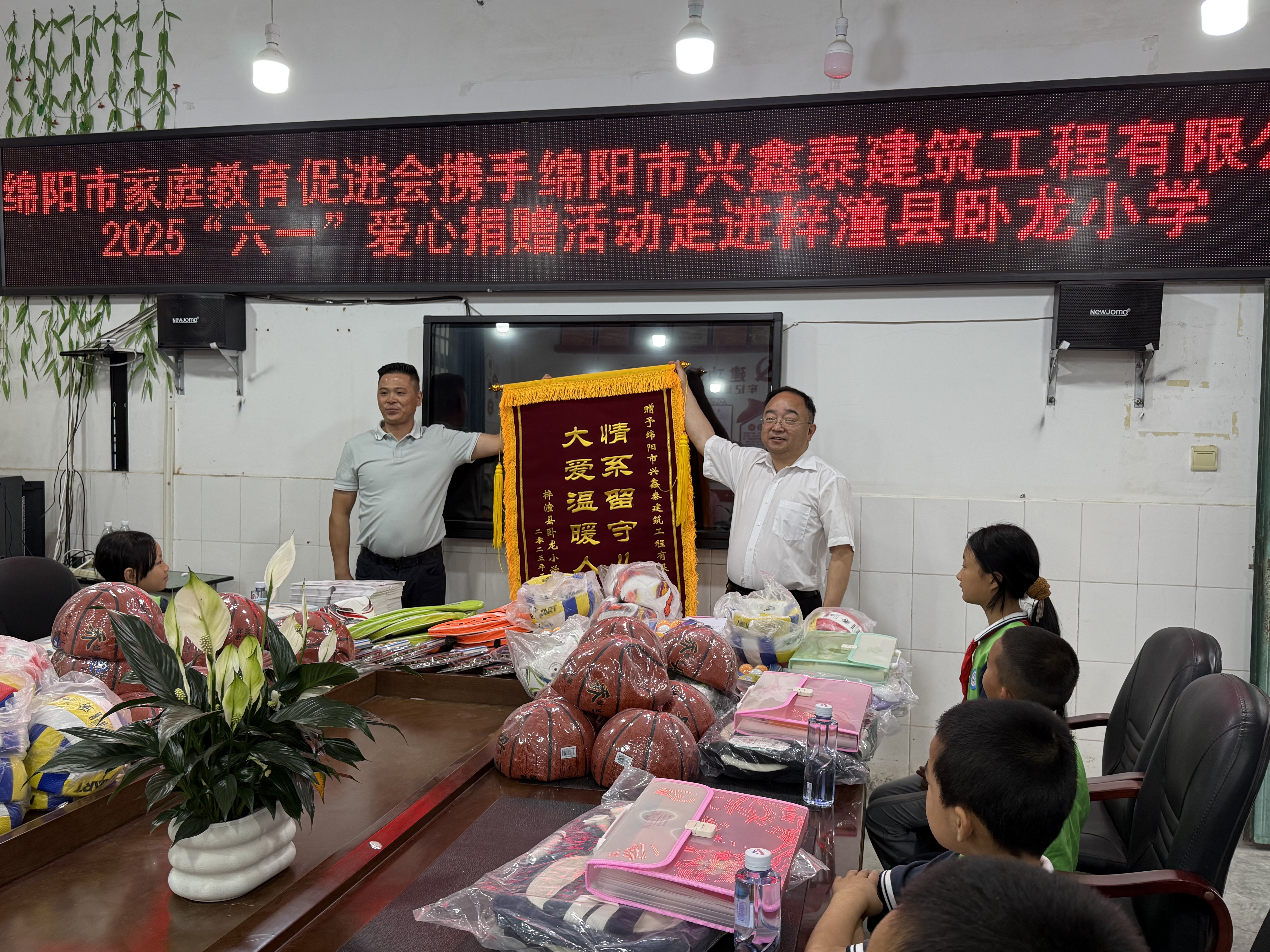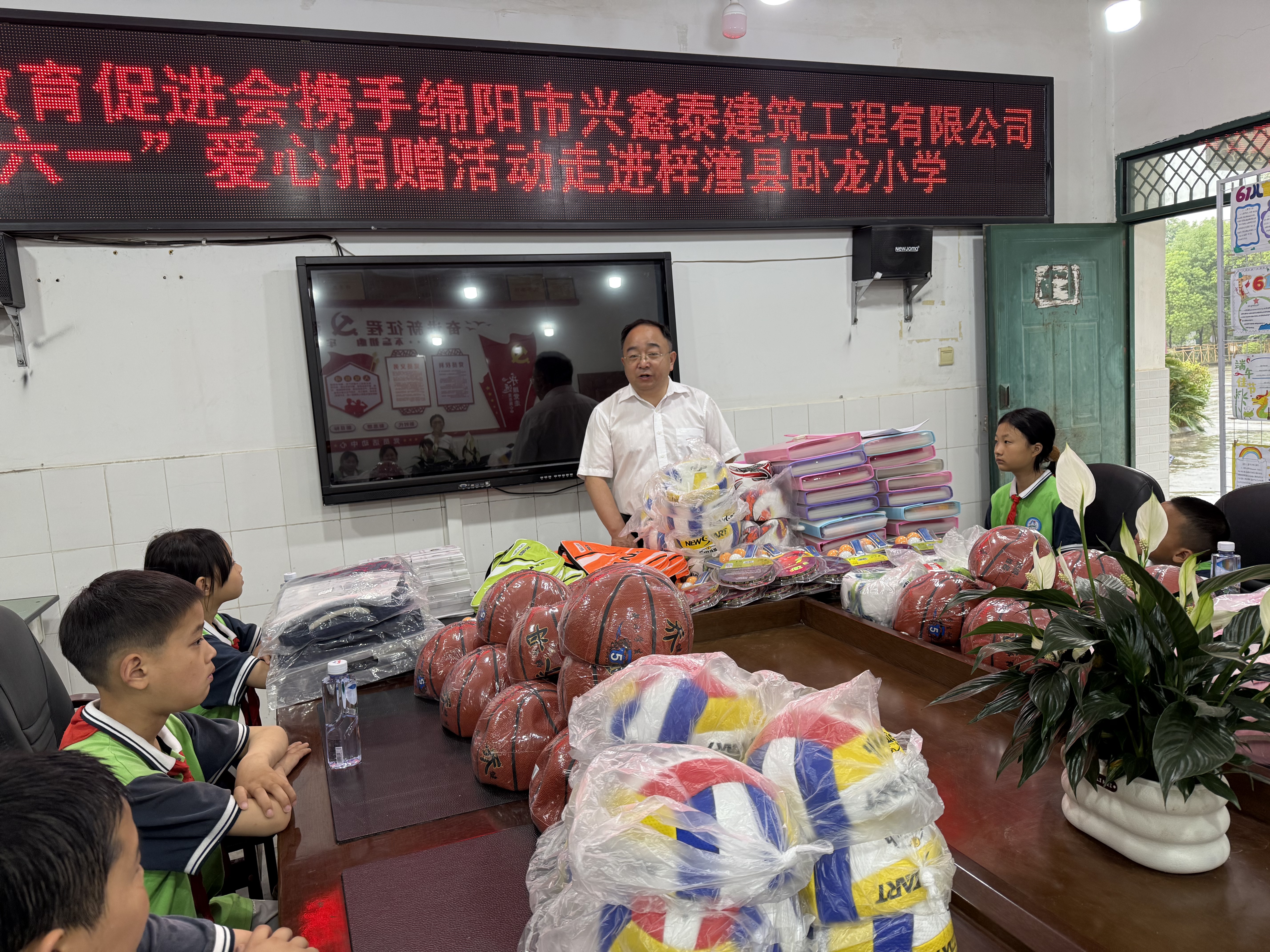 在2025年“六一”儿童节来临之际,我会携手绵阳市兴鑫泰建筑工程有限公司走进梓潼县卧龙小学,开展爱心捐赠活动,为学生们送去了体育用品和文具,传递了浓浓的温暖与关怀。