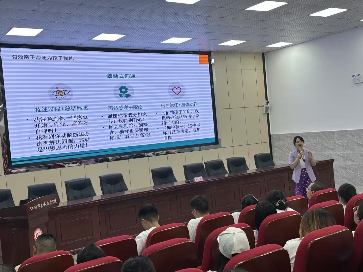 秋高气爽,阳光灿烂,今日我会副秘书长郭萍、高级讲师石敏、办公室张菊赴涪城区吴家中学、江油市长城实验学校为学生和家长开展心理团辅和家庭教育讲座活动。在吴家中学,石老师以《阳光青春 健康成长》为主题,引导全体学生探索生命的意义、情绪急救的策略及方法,期间同学们积极分享、收获良多。在长城实验,石老师以《家校共携手 沟通促成长》为题,从5+2=?解读入手,为家长们分享了家校共育的意义、原则,家校沟通的方法,以及亲子沟通的技巧等。期间,家长们认真聆听、收获满满。讲座不但得到了家长的好评,也得到了校方的赞誉。